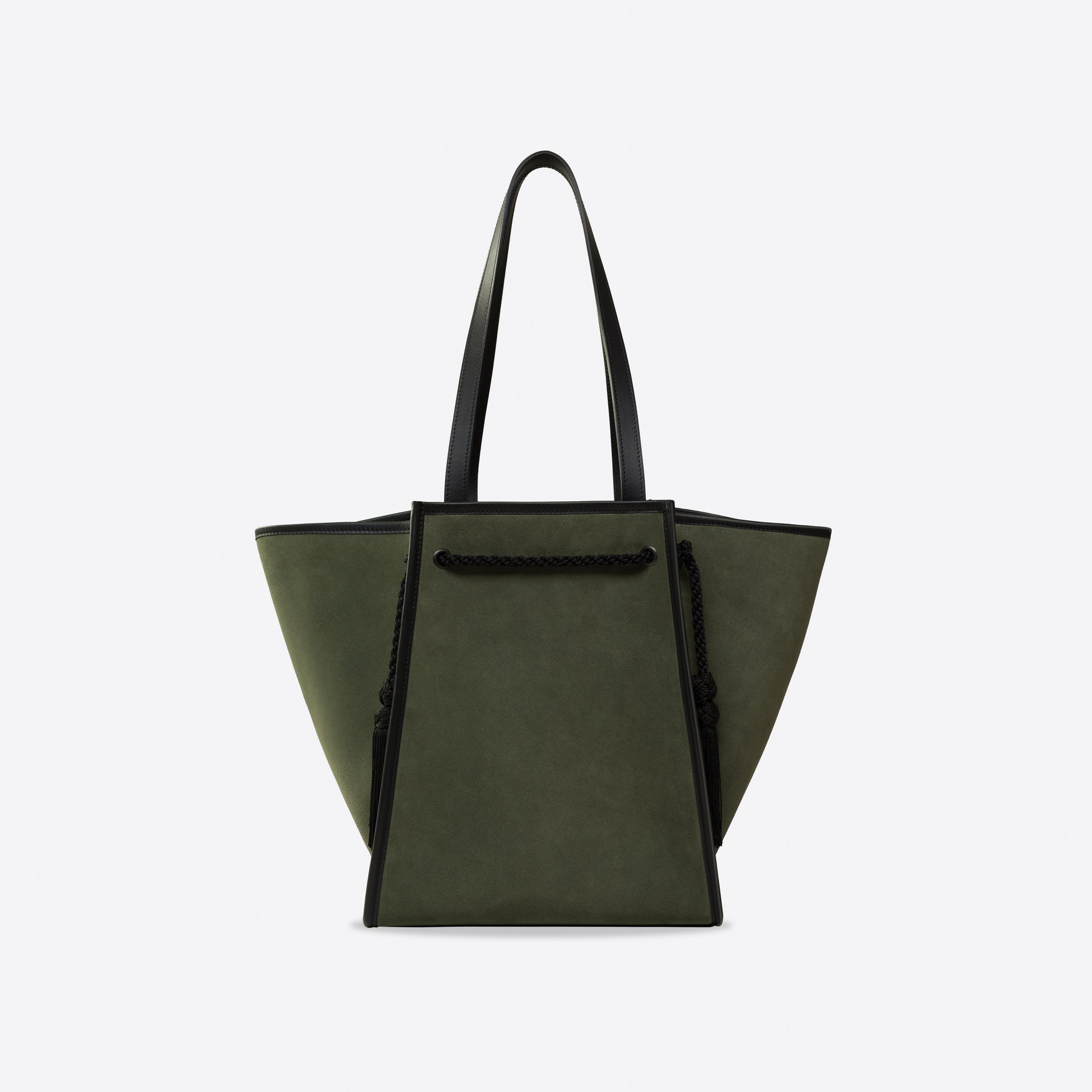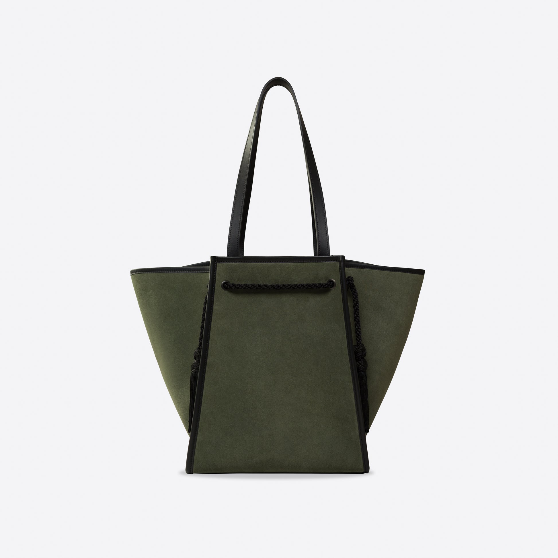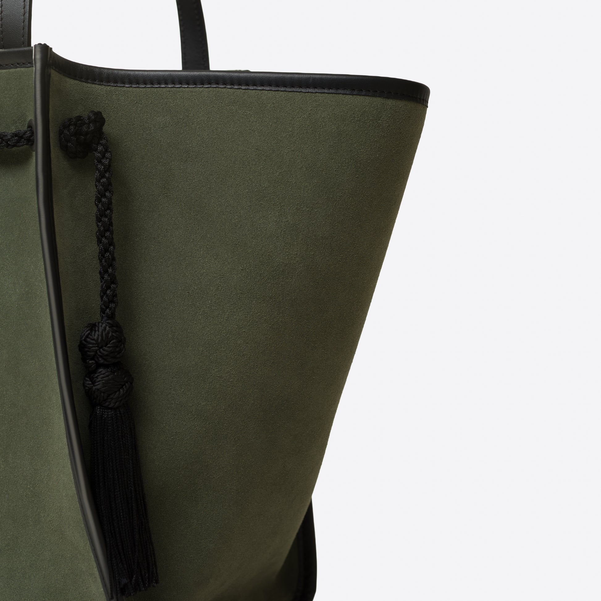 A timeless blend of elegance and practicality, the Lydia tote bag in khaki suede is designed to elevate your everyday style. Its smooth leather accents and sophisticated decorative trim are complemented by two graceful tassels, adding a subtle touch of luxury.